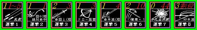 また、この効果は累積する。(1ターンに二回運撃5を打ち込めば、命中は1/4になる)