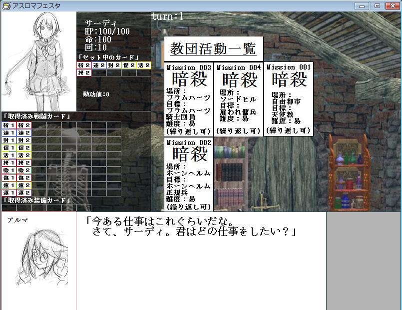 襲撃により要人を暗殺に行く(成功すれば能力UP+イベント進行度UP)。