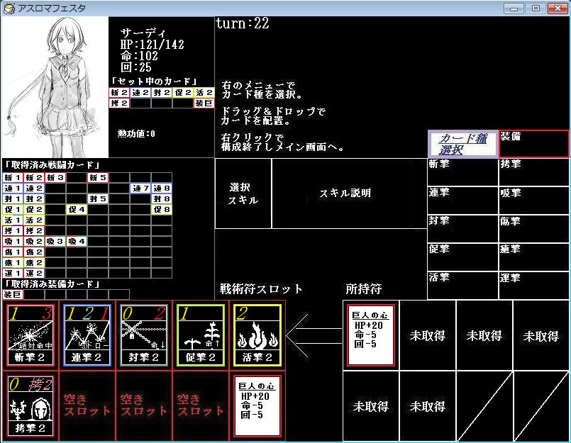 戦闘用のカードをセットする。ターン消費なし